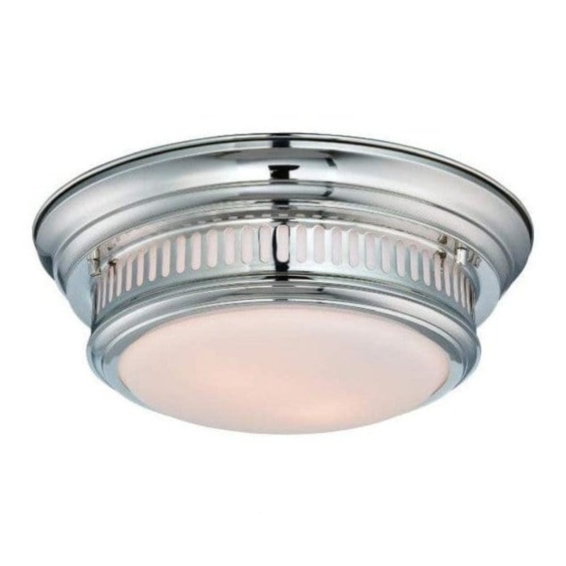The Gladstone flush mount is a beautifully detailed fixture with a vented shade holder allowing light to filter through the sides in addition to the bottom. The etched, opal glass shade and choice of three richly plated finishes and make this an incredible fixture for any decor.