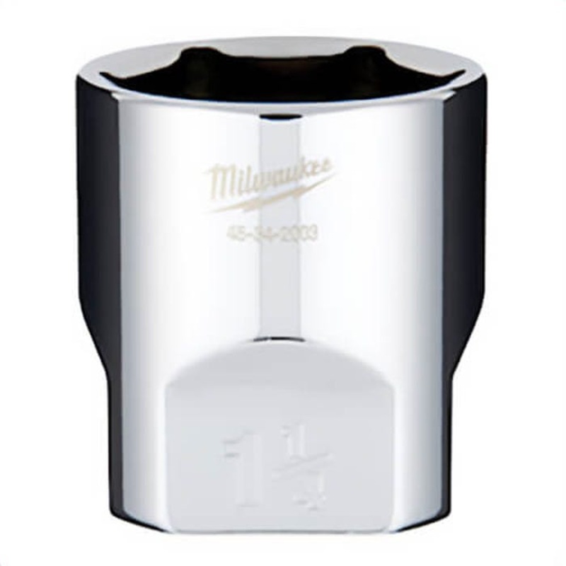 The Milwaukee 1/2 in Drive 1-1/4 in SAE 6-Point Standard Socket with FOUR FLAT Sides was designed from the ground up to be part of the most versatile socket family. The 1/2 in drive sockets feature an innovative design with four parallel flat sides, which