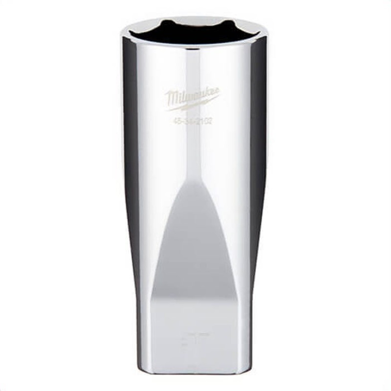 Milwaukee socket, no impact rated, measurement system: imperial, 1/2 in drive, deep socket, 1 in socket, 6 points, vanadium steel, polished chrome. Manufacturer Part Number: 45-34-2102 Manufacturer: Milwaukee Tool Brand Name: MILWAUKEE UPC: 045242616114 Le