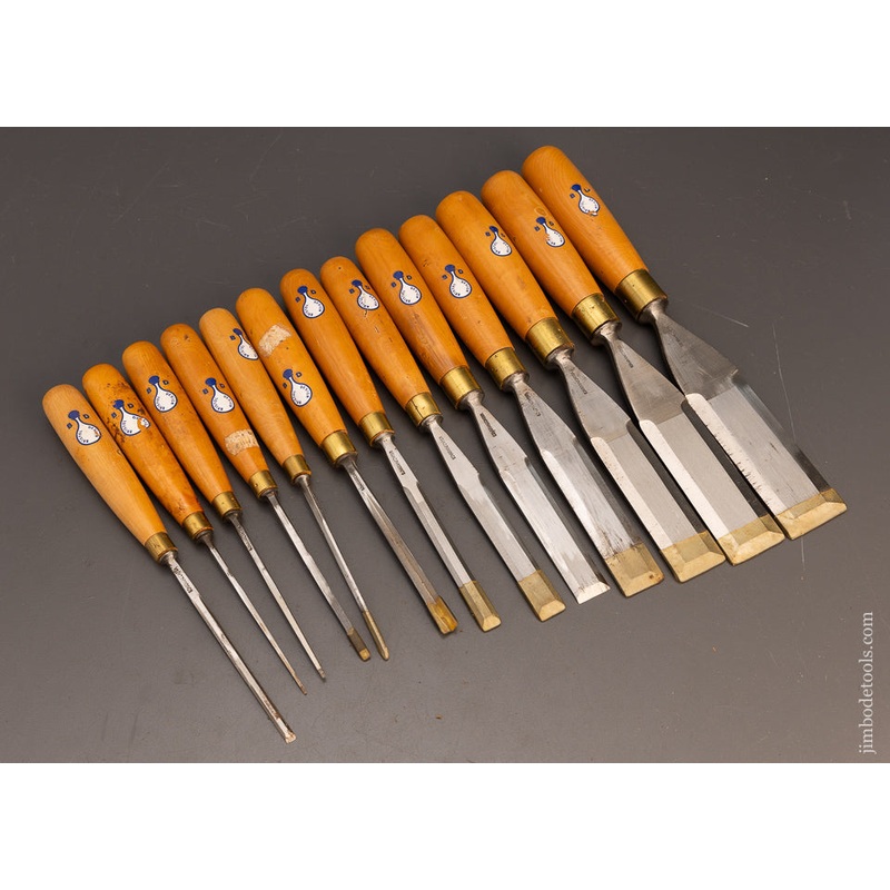 Mint Unused Set of 13 BRISTOL DESIGN SCHARWAECHTER Tang Firmer Chisels with Boxwood Handles Mint & Unused – 115889