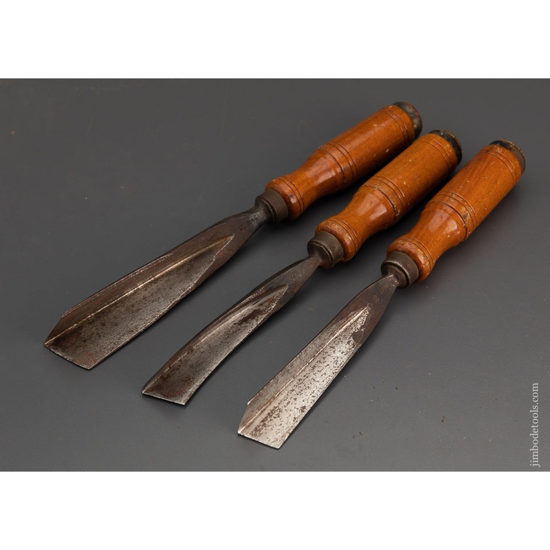 Among the largest we have ever seen. A graduated set in 57, 60 & 75. 1 1/4 to 1 1/2 inch sizes. In 1835, David Strasmann (DASTRA) was founded in Wuppertal-Ronsdorf, Germany. The chisels are hand graduated to RC 60-61 and hold a razor sharp edge.