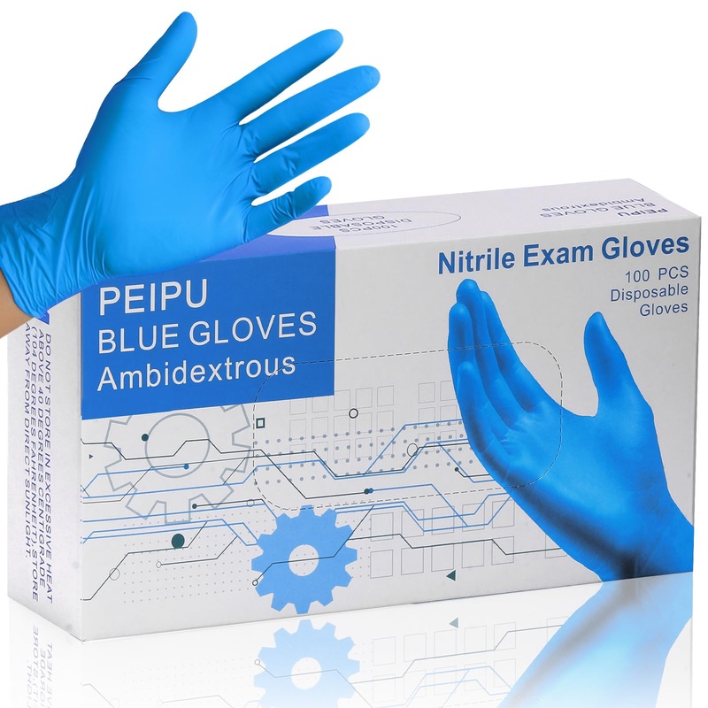 Brand: PEIPUColor: BlueFeatures: [High-quality Nitrile Gloves] -PEIPU Nitrile gloves are more thicker, stronger and more wear-resistant than typical vinyl gloves.PEIPU Nitrile gloves are 4 mils thick,These gloves shape the hand, provide comfort and respons
