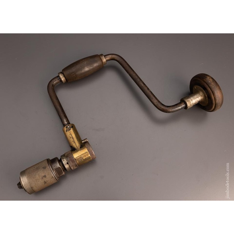 .The finest and heaviest duty, most indestructible bit brace ever made. Silky smooth ball bearing construction, both top and bottom. Oil filled. Concealed ratchet system. Heavy-duty chuck. Accepts both traditional square tapered shank bits as well as round shank bits. The last bit brace you will ever need! Good jaws. Smooth operation.