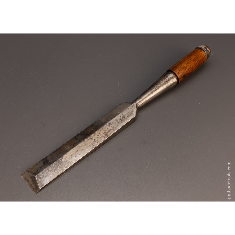 Clean, fine, no issues. 16 inches long. A massive antique laminated chisel by one of the most respected makers of all time. Very thick at the neck. Bright, clean, razor sharp. Laminated chisels are sought after because the combination of softer steel and h