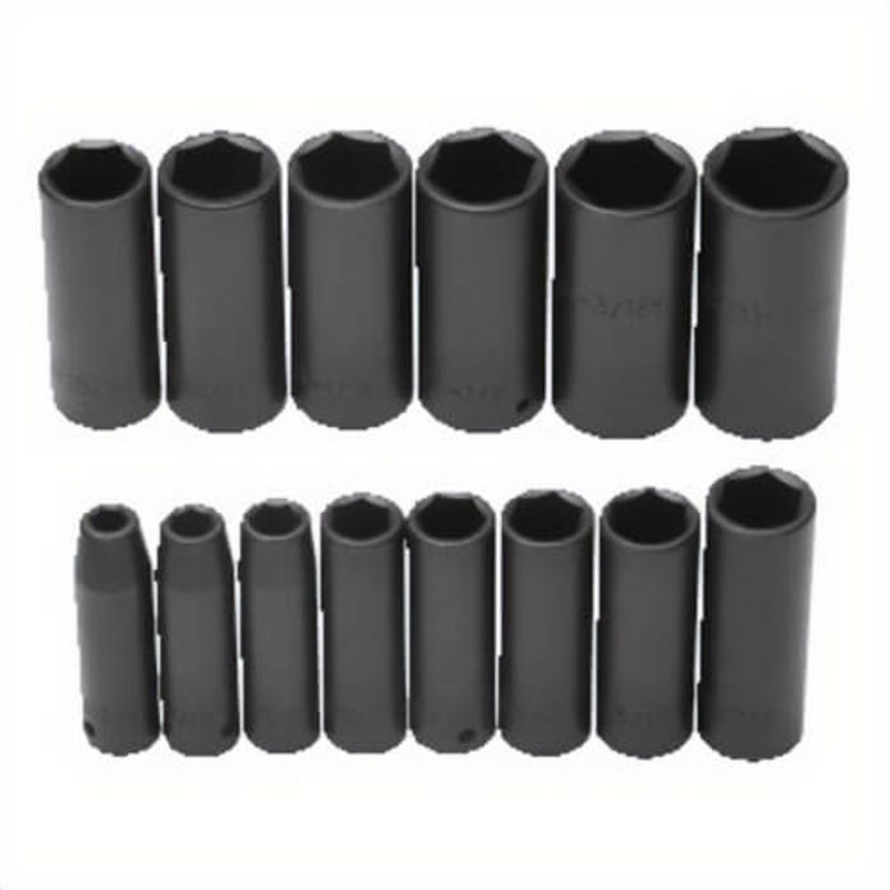 Proto TorquePlus socket set, deep, yes impact rated, measurement system: imperial, 15 pc, 6 points, included socket size: 3/8 to 1-1/4 in, 1/2 in drive, square drive, alloy steel, black oxide. Manufacturer Part Number: J74114 Manufacturer: Stanley Black &