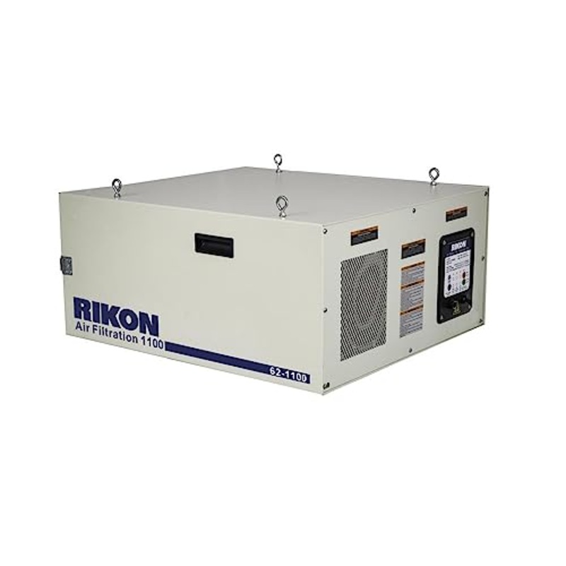Brand: RIKON Power ToolsFeatures: 1/2 HP motor with 560, 750 or 1000 CFM20 Ga. Steel cabinet with eyebolts for installationThree timer settings on unit or remote controlQuick release latches for changing inner and outer filtersPart Number: 62-1100Details: