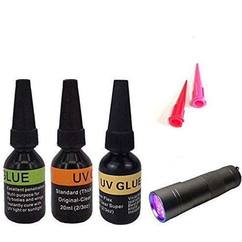 Brand: RiverrunsColor: UV glue comboFeatures: High tech introduced from Dental word. No any harm effect. Environmental friendly. They cure in seconds under UV light, become crystal clear and glass smooth. Customer can use the dubbing needle open the bottle