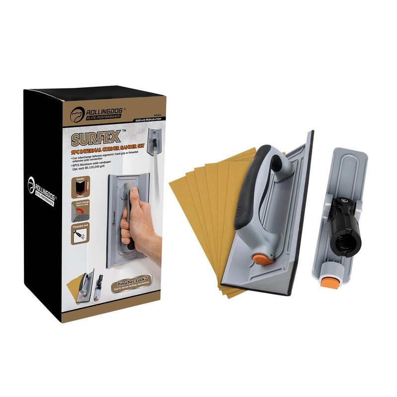 Brand: ROLLINGDOGColor: Corner Hand SanderFeatures: 9PC CORNER SANDER SET: Two sided pad fits right into corners for quick even sanding. Each side will sand out about 3 inches from center of cornerSANDPAPER INCLUDED: 6pcs of sandpaper in a range of grit be