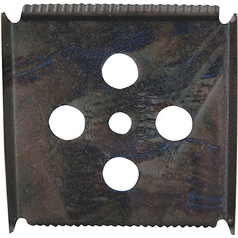 Scrape any surface without gouging. Extremely durable. Lasts through tough jobs. Resharpen with file. Four scraping edges. Size 3.