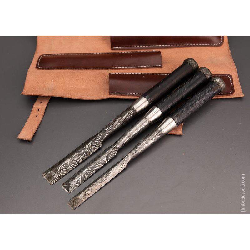 15 mm, 20 mm & 24 mm sizes. Damascus steel with zercote handle. 12 inches long. Leather sheath.