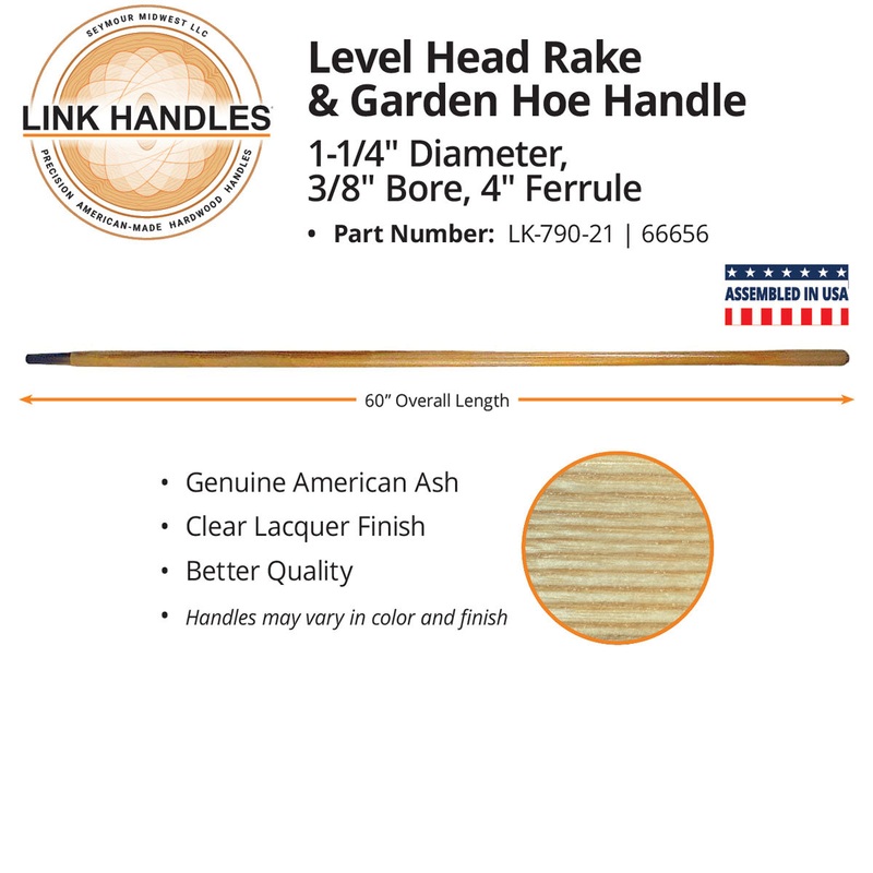 Seymour Link Handle 60 level head rake and garden hoe Handle, 1-1/4 diameter, ferruled, 3/8 bore