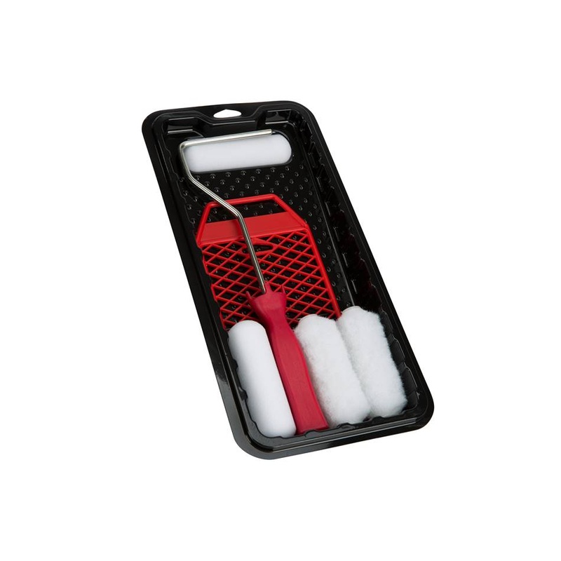 Premium project kitKit includes (2) 4" 3/8" nap knit mini rollers, (2) 4" high density foam roller covers, mini roller frame, plastic paint grid and plastic trayMini rollers designed for semi-smooth surfaces like walls and ceilingsFoam rollers perfect for