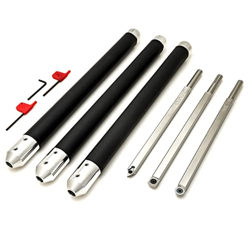 Brand: Simple Woodturning ToolsFeatures: American Made Set of 3 Full Size Carbide Lathe Turning Tools with Color Coded Handles: Hollower, Detailer & Rougher17" long solid aluminum foam grip tool handles are color coded for easy tool identification. Overall