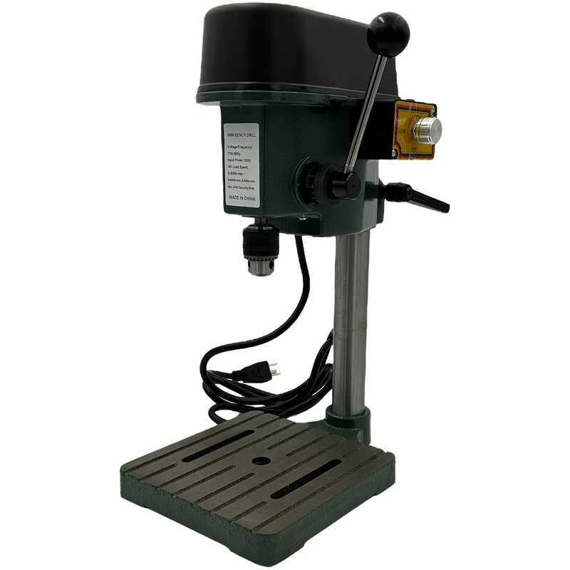 This new, easy-to-use benchtop drill press is tiny, but powerful enough to use for all of your drilling projects. With a platform measuring only 6-3/4″ x 6-3/4″, it is space-saving as well as economical. Variable speed up to 8,500 RPM. One year warranty. WARNING: Cancer and Reproductive Harm – www.P65Warnings.ca.gov