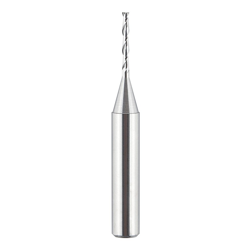 Details: Solid Carbide spiral router bit with 1/4inch shank and 1/16inch cutting diameter, 1/2 inch cutting length, 2 inch for total length