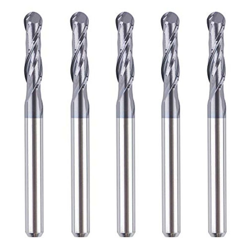Brand: SpeToolFeatures: SIZE. 1/8" shank, 1/8" cutting diameter, 1/2" cutting length, 1-1/2" over all lengthSPECIFICATION. Ball nose, 2-flute, HRC55 with tialn coatedPREMIUM QUALITY. Made of high quality tungsten carbide, precision edge-grinding technology