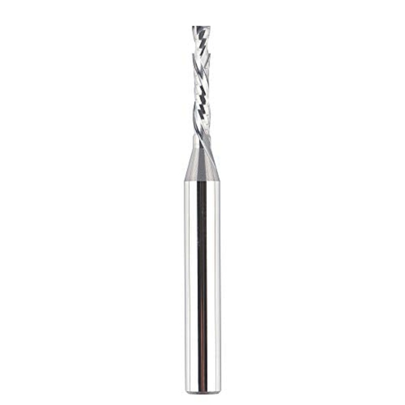 Details: Solid Carbide spiral router bit with 1/4inch shank and 1/8inch cutting diameter, 1 inch cutting length, 2-1/2 inch for total length