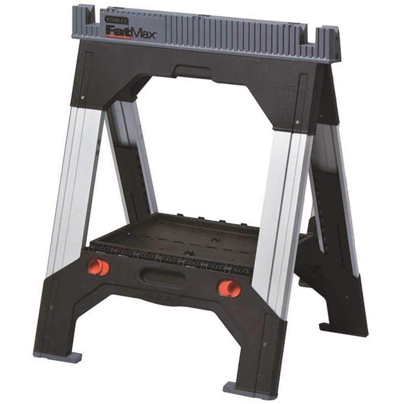 Details: Product DescriptionSTANLEY 011031S FM SAWHORSE ALUMINUM LEGSFrom the ManufacturerThe Stanley Consumer Storage 011031S FatMax Sawhorse with Adjustable Legs allows for the legs to be adjusted separately, allowing the sawhorse to stand on uneven surfaces. It has rubber inserts for added stability. Made from high-quality, sturdy polypropylene and steel for a sold sawhorse. It has a unique slide mechanism, providing for easy, smooth adjustment.