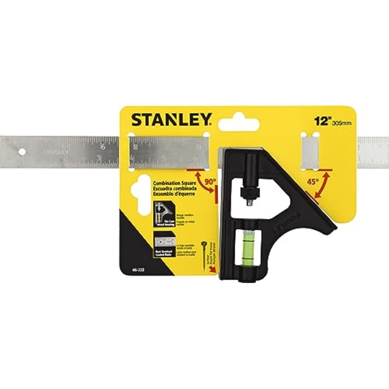 Brand: StanleyColor: MultiFeatures: Grooved blade, scriber in handleEmbossed hard-chrome blade is coated to resist rustDurable, black die-cast metal handleEasy-to-read vialBinding: Tools & Home Improvementmodel number: 46-222Part Number: 46-222Details: Pro