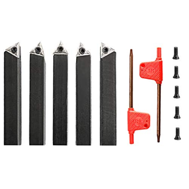 Brand: ToollyFeatures: Includes 5 inserts TCMT1102042 pieces style "A" for turning, facing, boring, and chamfering2 pieces style "B" for turning, facing, boring, and for lead angles1 piece style "E" for turning, facing, boring, chamfering, threading, and V