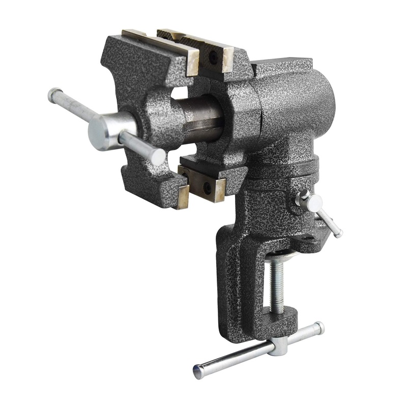 Toolsmith 2-1/2 inch Mini Jaw Portable Clamp-on Table Bench Third Hand Vise Swivels and Rotates 360, 1-1/2 inch and 2-1/2 inch Jaws, Soft Jaw