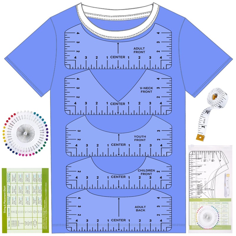 • What You GetTietoc ORIGINAL Tshirt vinyl alignment tool set contains 5pcs all kinds size t shirt rulers, 1pcs soft measuring tape, 1pcs 40 multi-color pins for fixing & product instruction to let you know the size and placement of your design. These rules can meet the design needs of the whole family clothes. Free your imagination and enjoy DIY fun from now on!