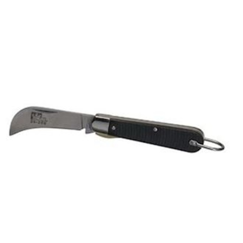 Item #:35-286Hawkbill Knife with 2-1/4 inch curved, high-carbon steel blade locks in open position. Carbon-steel backspring and carrying ring with durable Buyrate handles.01.01.2024, Electrical, hand tools, Ideal Industries, Utility Knife