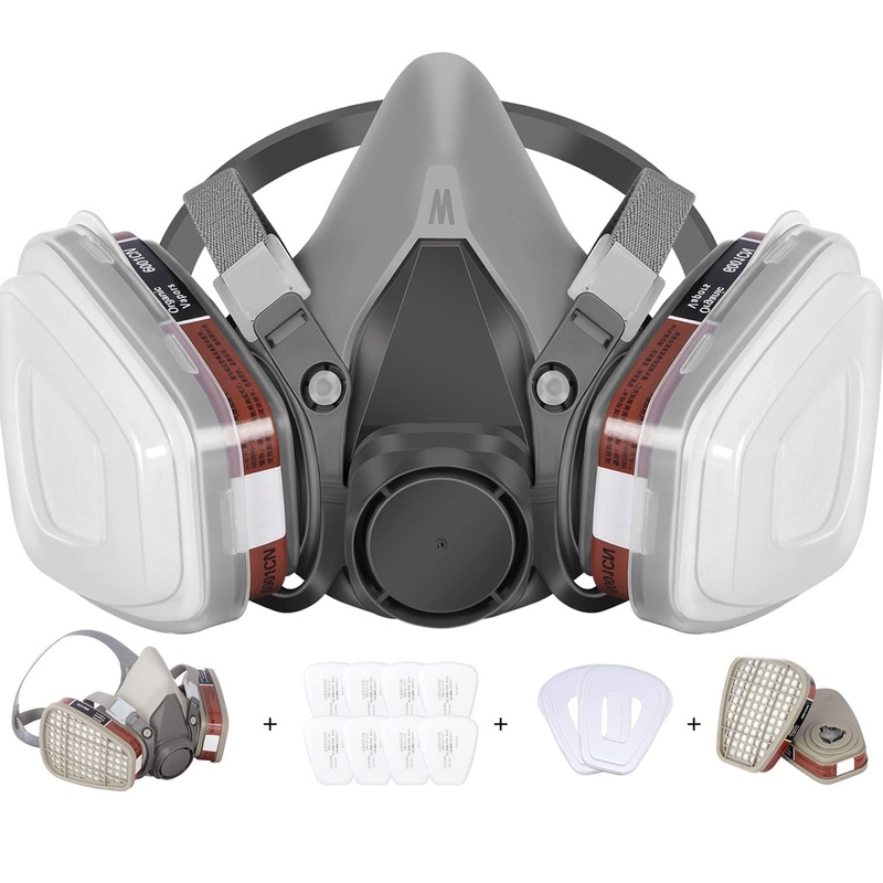 Details: Specification:Filter type: Organic vapor/gas and dust particlesFacepiece type: Half face (reusable)Primary material: thermoplastic elastomer (TPE)Size: one size fits allWhen to Change the Filter Cotton?When you feel that the breathing resistance is obviously too large, the human body feels uncomfortable,or the filter dust is dirty or damaged, the filter cotton needs to be replaced.The filter cotton is usually replaced in about 8 hours (you can extend or shorten the service life accordingto your environment) Warm Tips:Used in special cases: the filter box is generally replaced within 200 hours.Used normally: the filter box can be used without changing or extending the time.The filter box and filter cotton can not be washed, other parts of the mask can be cleaned.Do not use in the following cases. Unknown hazardous substances. Concentrations of harmful substances Too highPackage Included:1 x 6200 Half Respirator Face Cover2 x 6001CN Replaceable Filter Boxes2 x Plastic Covers8 x 5N11 Filters Cotton
