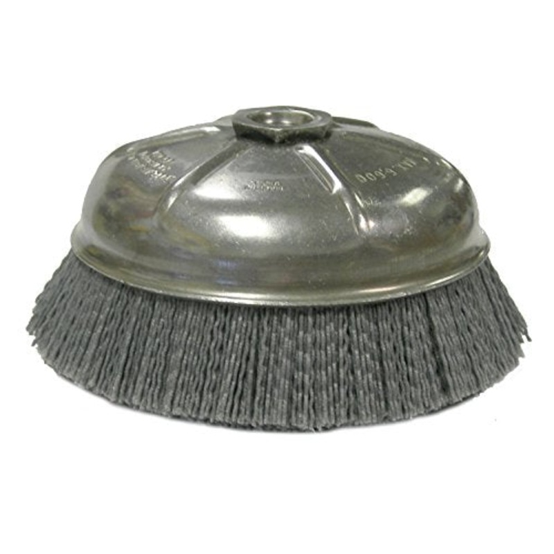 Details: Weiler 14506 6 inch Nylox Cup Brush , .040/80SC Crimped Fill, 5/8 inch-11 UNC Nut, 1-1/4 inch Trim Length. Weiler also offers an assortment of Nylox tools featuring traditional cup brush construction for deburring and finishing use in lighter duty applications. These brushing tools can be used on dedicated machines in automated processes or on low speed/high torque hand held tools for manual applications. Engineered and manufactured to maximize performance and minimize operating costs in the most demanding surface conditioning applications. The use of superior construction, the highest quality materials and the most stringent manufacturing processes deliver the lowest cost-of-use and most consistent performance in heavy production environments.