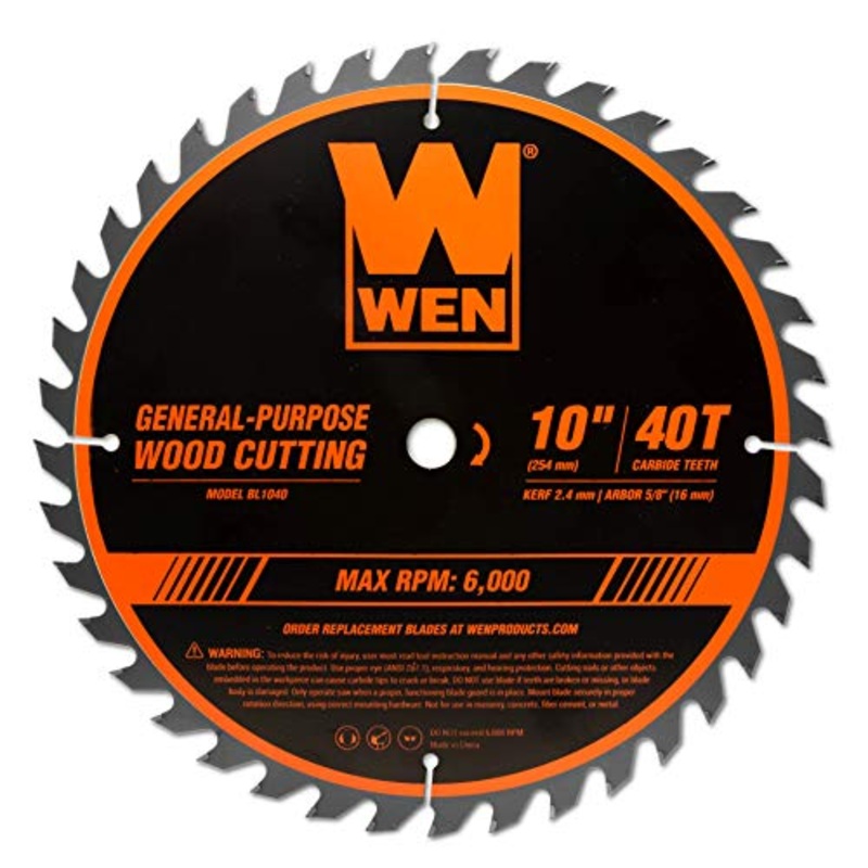 Details: Remember when you had a smooth cut with no tearout? The WEN 10-Inch Professional Woodworking Saw Blade provides reliable and accurate performance, maintaining its straight shape and sharp edges for longer than the competition. The machine-cut carbide-tipped teeth slice through woods of any kind, making easy work out of pine, oak, poplar, cherry, maple, walnut, and more. The 5/8-inch arbor allows for compatibility with the majority of 10-inch miter saws, jobsite saws, and table saws on the market. Heat expansion slots help the blade expand and contract as needed to provide maximum accuracy across a wide range of cutting conditions. Our unique protective coating fights off potential damage caused by heat, rust, corrosion, gumming, resin, and more. This lightweight, ultra-thin blade provides maximum efficiency during operation, leaving behind a kerf a mere 1/10 of an inch wide (2.4 mm). Its time to get reliable and powerful performance with a WEN Saw Blade. Remember when you had a blade that lasted? Remember WEN.