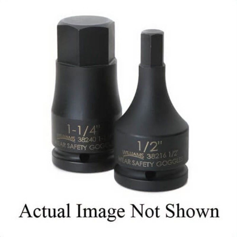 Williams Socket Driver Bit, 1 pc, Impact Rated, Imperial, Square Drive, 3/4 in Drive, Hex Bit, 1-1/8 in Bit, 3/4 in Bit Length, 1-3/4 in Drive End Width, 3-1/2 in OAL, Industrial Black. Manufacturer Part Number: JHW38236 Manufacturer: Snap-on Industrial Br