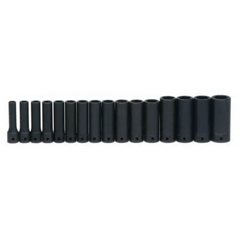 Includes: 14M-610 10 mm, 14M-611 11 mm, 14M-612 12 mm, 14M-613 13 mm, 14M-614 14 mm, 14M-615 15 mm, 14M-616 16 mm, 14M-617 17 mm, 14M-618 18 mm, 14M-619 19 mm, 14M-620 20 mm, 14M-621 21 mm, 14M-622 22 mm, 14M-623 23 mm, 14M-624 24 mm, 14M-627 27 mm Deep Length Sock