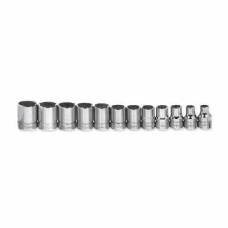 Williams Socket Set, Supertorque, Metric, 12 pc, 12 Points, Included Socket Size: 8 mm, 3/8 in Drive, Clip Rail, Chrome Vanadium Steel, Polished Chrome.