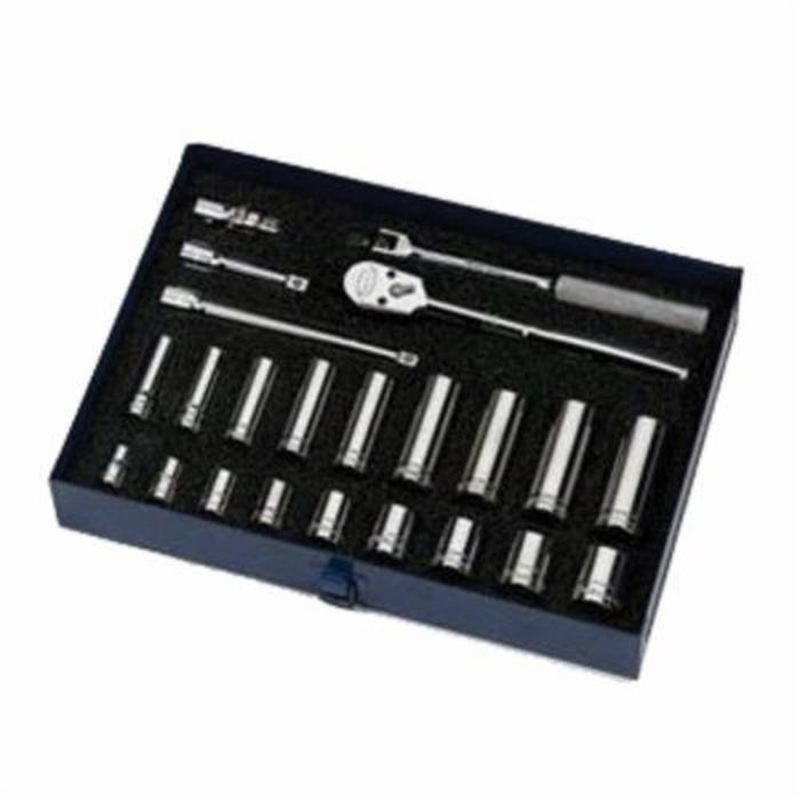 Williams Socket and Drive Tool Set, series: Supertorque, Imperial, 23 pc, 6 Points, 3/8 in Drive, Metal Toolbox, Chrome Vanadium Steel.