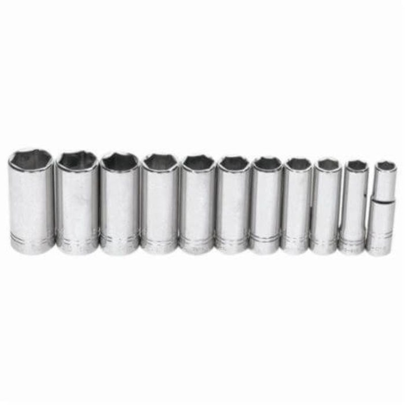 Williams Socket Set, series: Supertorque, Imperial, 11 pc, 6 Points, Included Socket Size: 1/2 in, 1/2 in Drive, Clip Rail, Polished Chrome.