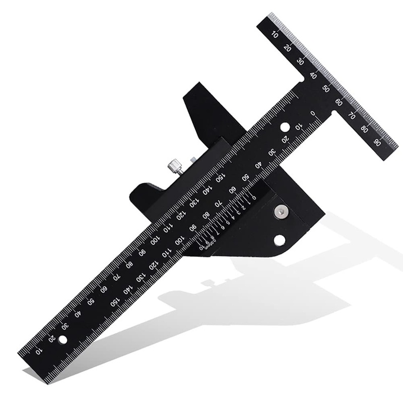 Brand: ETIGERColor: BlackFeatures: Composition: The ruler body is composed of a T-shaped ruler and a stopper. It is made of aluminum alloy.The surface is black sanded and anodized, wear-resistant, rust-proof, and comfortable to the touch.Function Ergonomic
