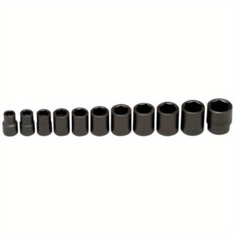 Wright tool impact socket set, measurement system: imperial, 11 pc, 6 points, included socket size: 7/16 to 1-1/16 in, 1/2 in drive, alloy steel, black oxide.