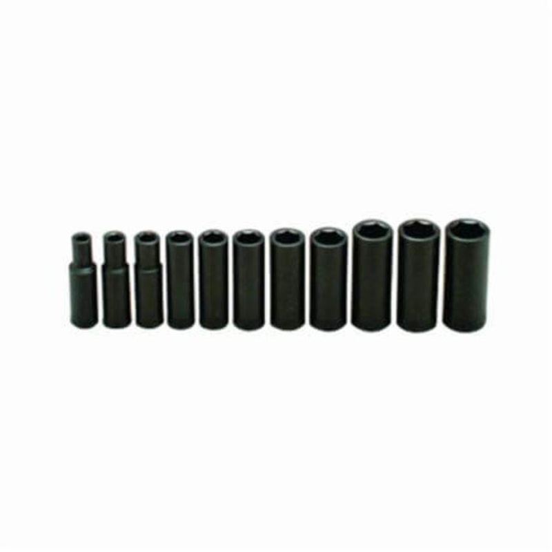 Wright Impact Socket Set, Imperial, 11 pc, 6 Points, Included Socket Size: 3/8 to 1 in, 1/2 in Drive, Alloy Steel, Black Oxide.