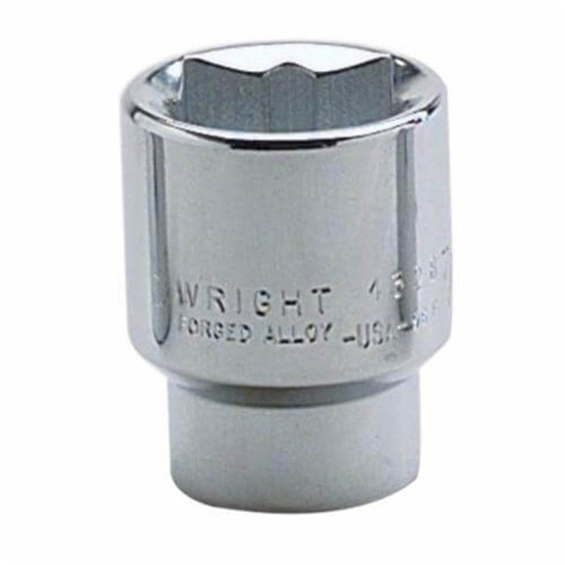 Wright Socket, Shape II Standard Length, Series, Measurement System, Square Drive, Drive Size, in 1/2, Socket Size, in 1/2, 1-7/16 Overall Length, Opening Depth in, in 17/64, 7/8 Drive End Width, Socket End Width in, in 7/8, Ball Locking, Number of Points, bolt Clearance Depth, Alloy Steel, Finish.