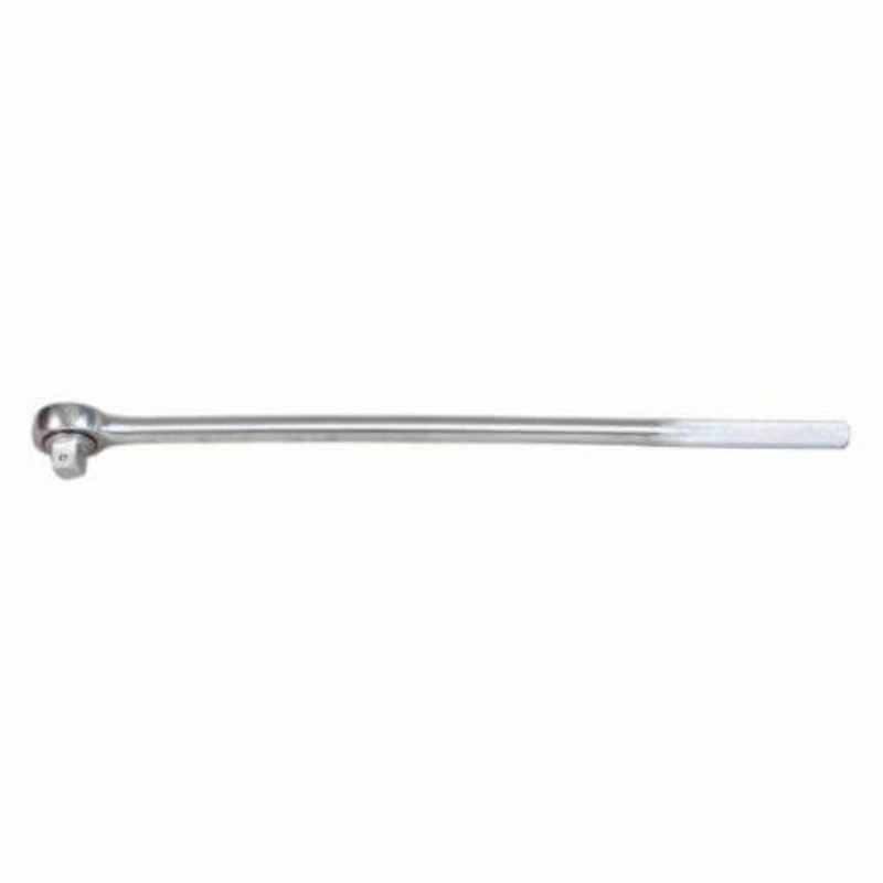 Wright Hand Ratchet, Uninsulated, Imperial, 1 in Drive, 30 in Overall Length, Round Head Shape, 8 Minimum Arc Swing, 45 Geared Teeth, Knurled Grip Handle, Steel Handle, Specifications Met: ASME B107.10M, Yes Reversible, Yes Tether Ready, Forged Alloy Steel, Polished Chrome.