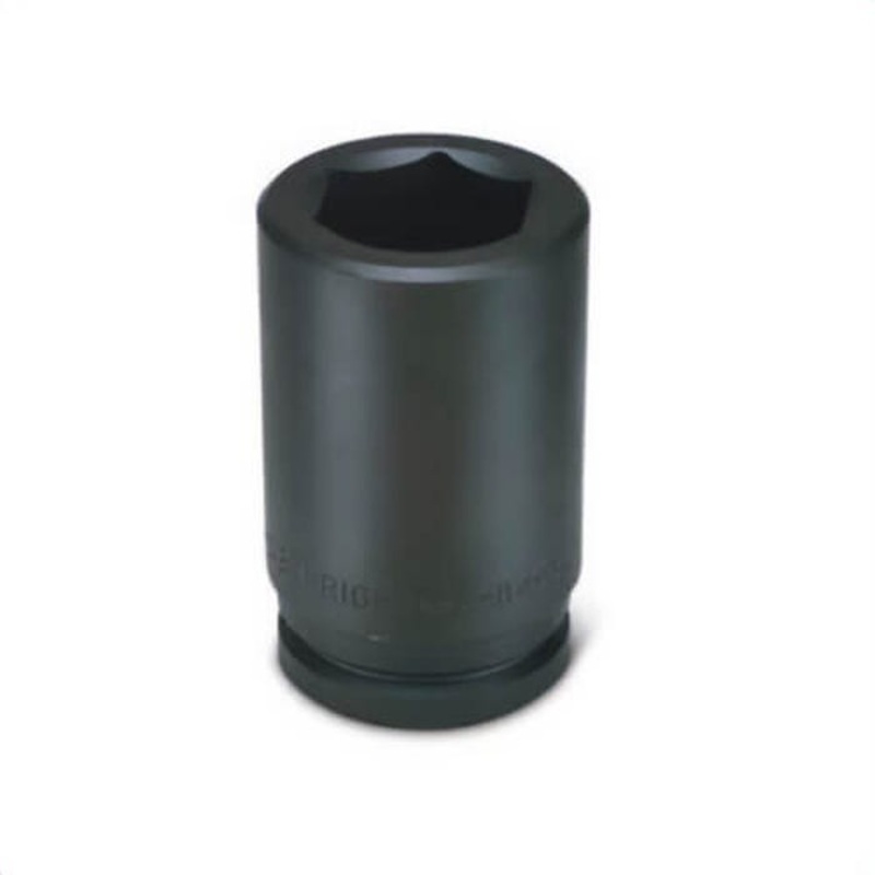 Wright socket, impact rated: yes, measurement system: imperial, 1-1/2 in drive, deep impact socket, 2-5/8 in socket, 6-1/16 in OAL, 1-11/16 in opening depth, 3-3/4 in drive end width, 4 in socket end width, 6 points, shape III style, alloy steel, black oxi