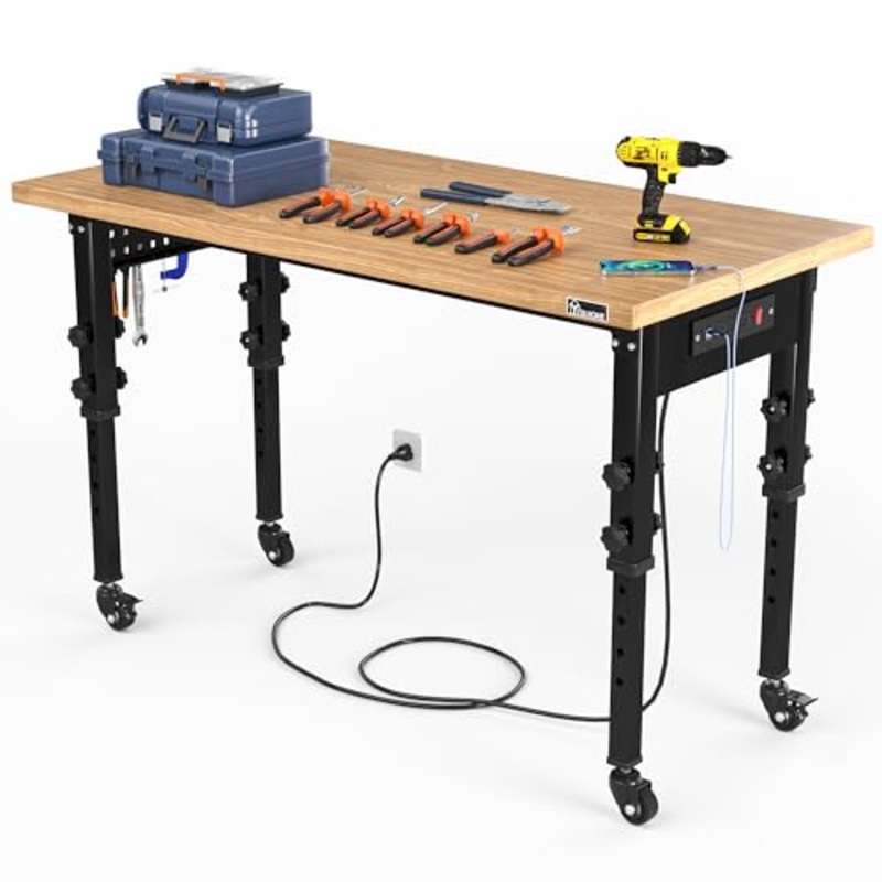 Brand: YITAHOMEColor: BlackFeatures: STURDY & DURABLEAdjustable workbench is designedfor heavy usage, featuring a 26mm thick, solid 48" * 24" oak-colored desktop; It cansupport up to1600lbs and the four adjustable rubber feetenhancestability on the ground,